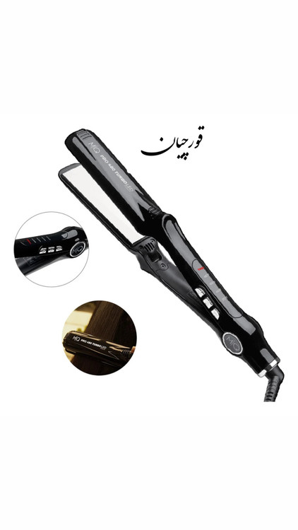 اتو امکیو با صفحات تیتانیو دارای دکمه توربو که مناسب موهای طببعی و رنگ میباشد ماهش دفعات اتوکشی تا ۵۰درصد دارای فناوری یون سازی و شاین مو دارای ۵درجه پر استفاده سالنها
